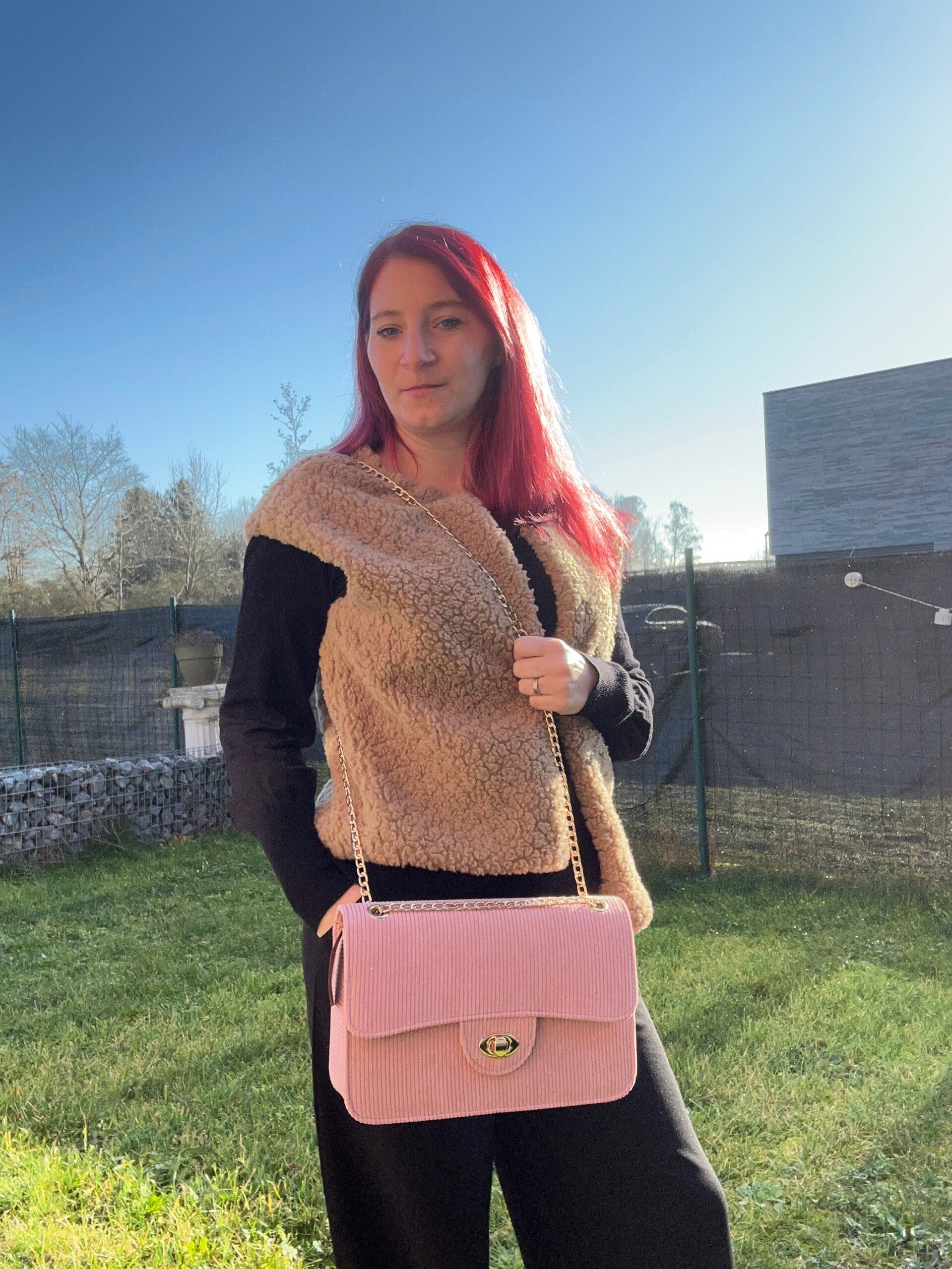 corduroy schoudertas met rits voor elke outfit.